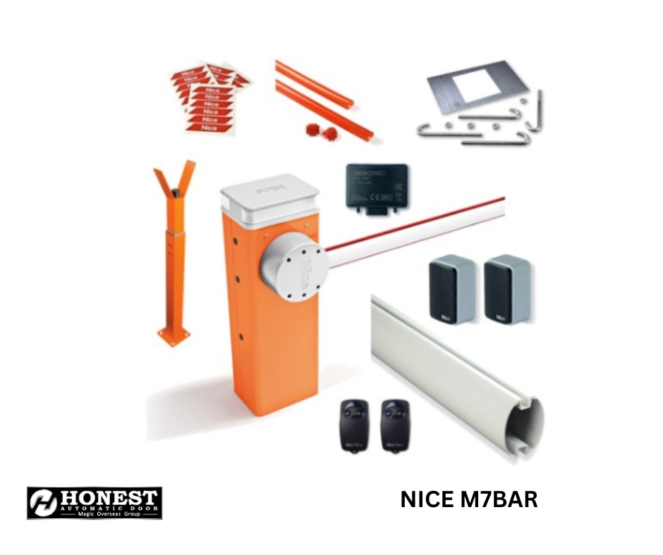The Nice M7BAR is a high-performance 24V automatic barrier gate designed for entrance widths up to 7 meters. Engineered for continuous, intensive use, this model is ideal for commercial, industrial, and large residential facilities requiring secure and efficient access control.